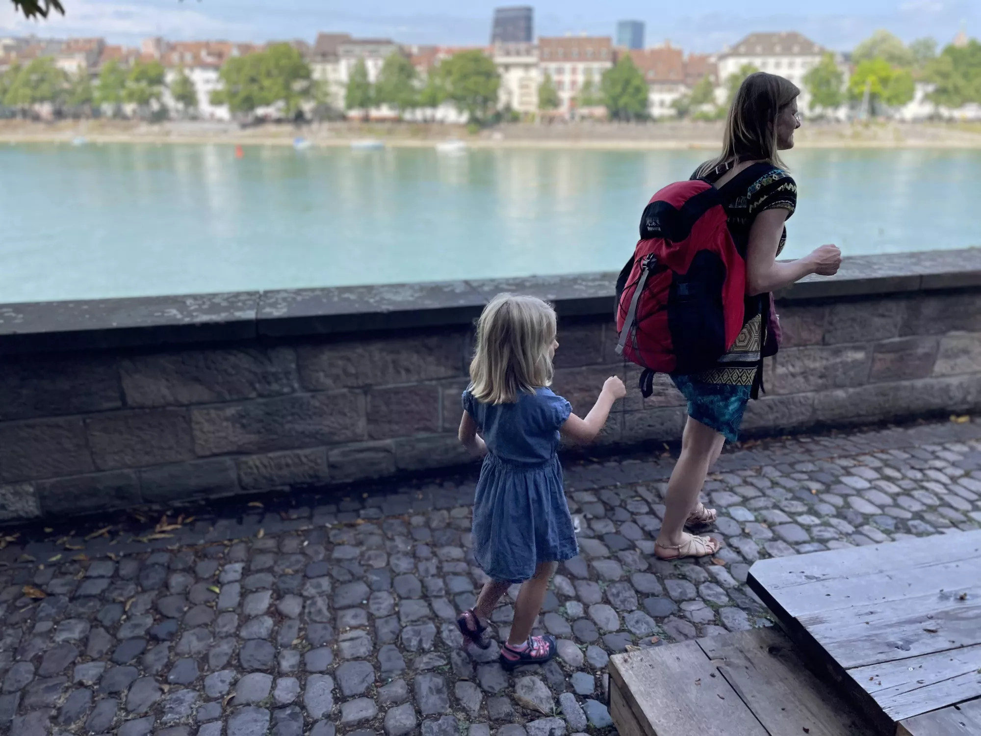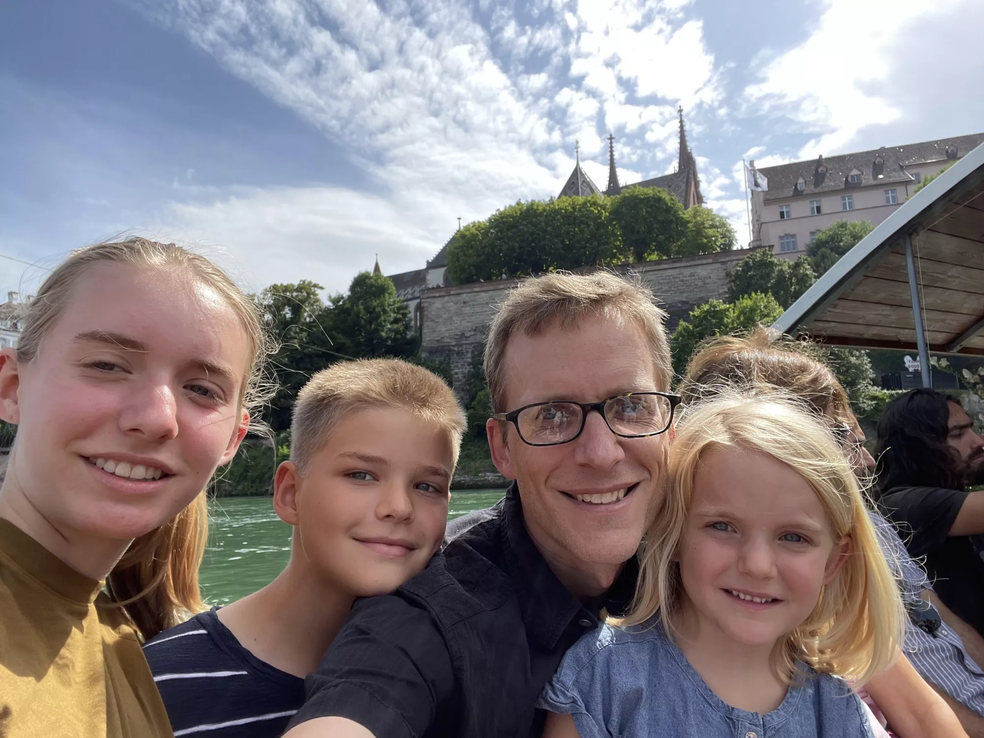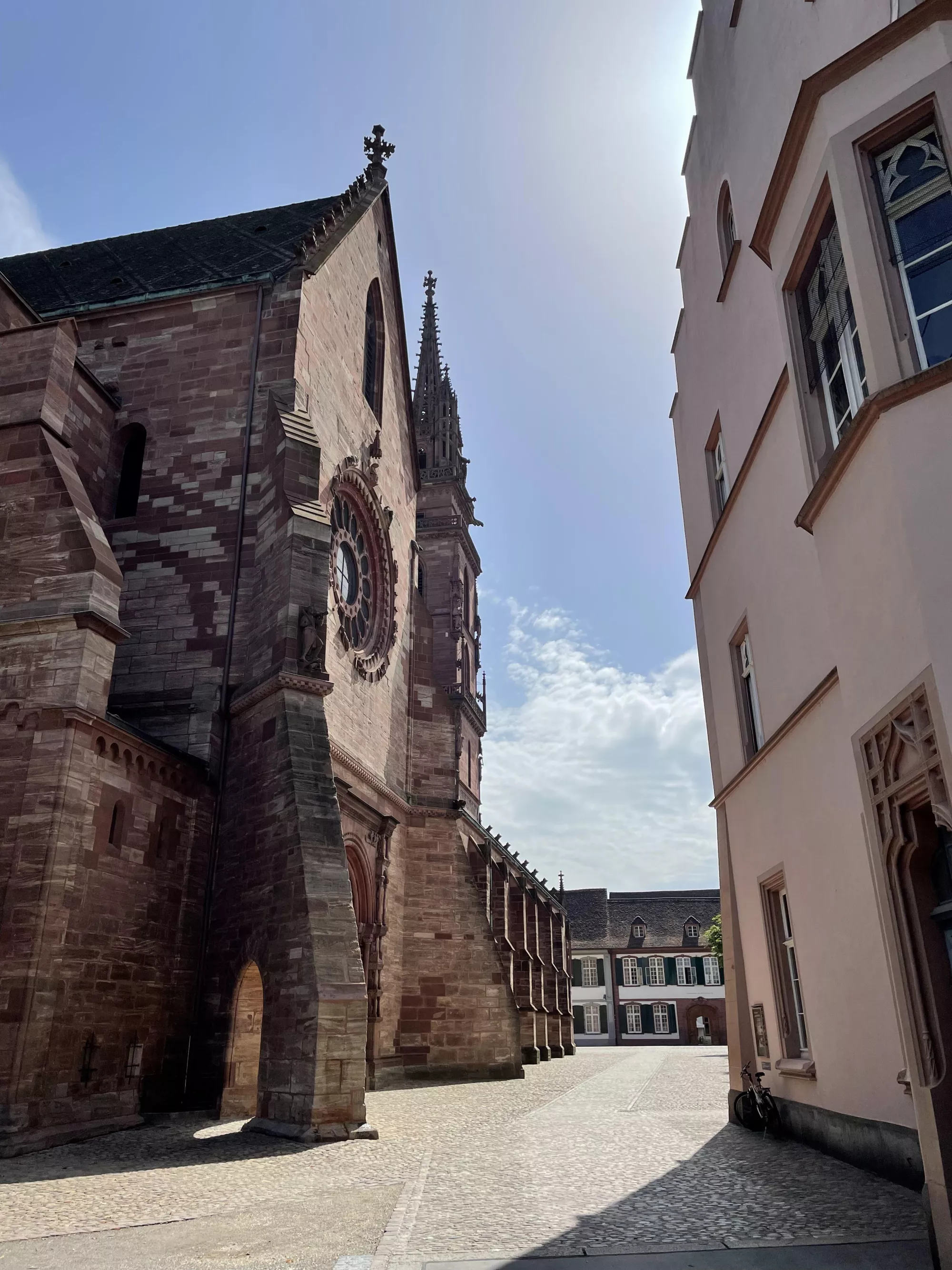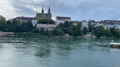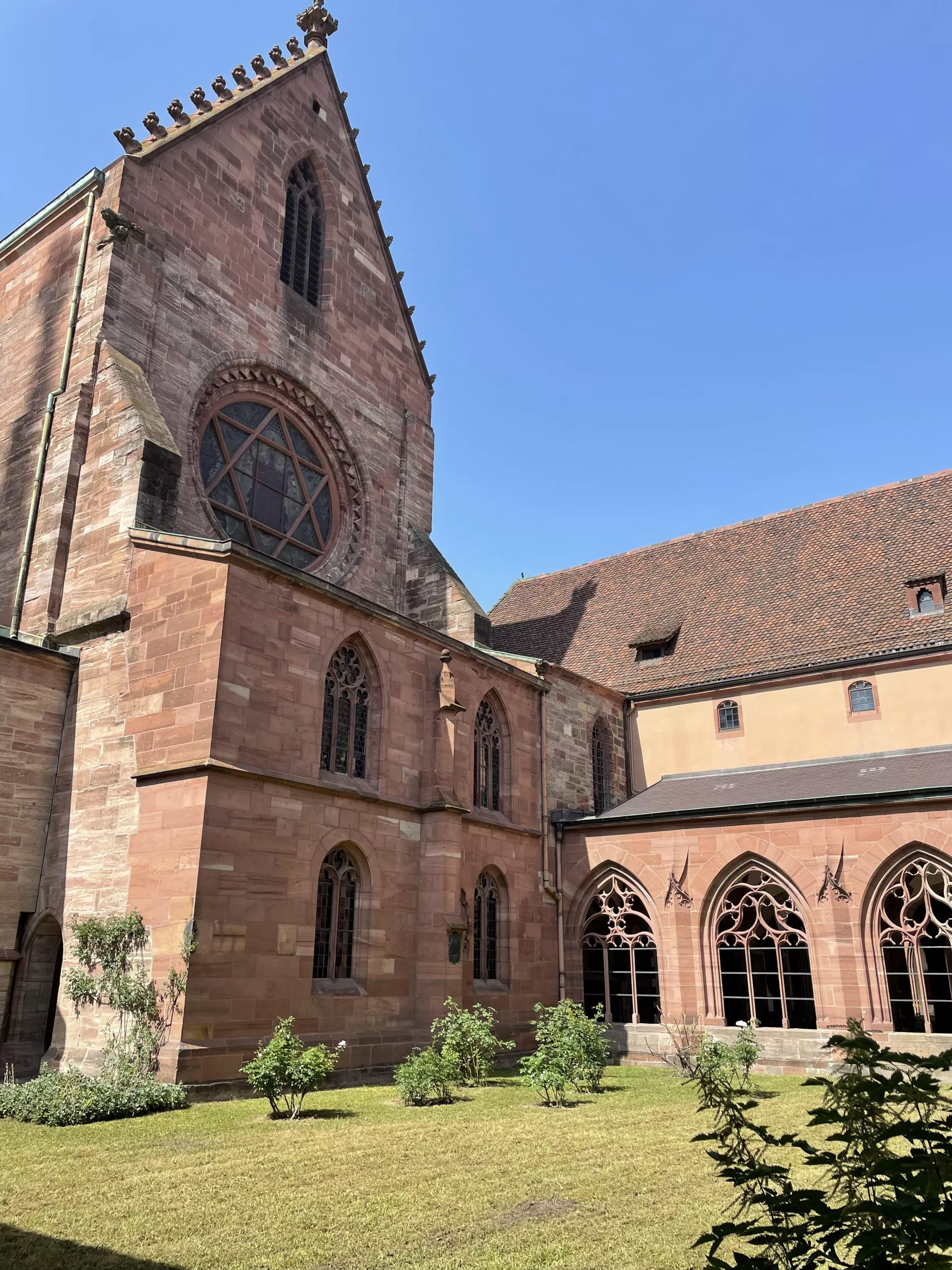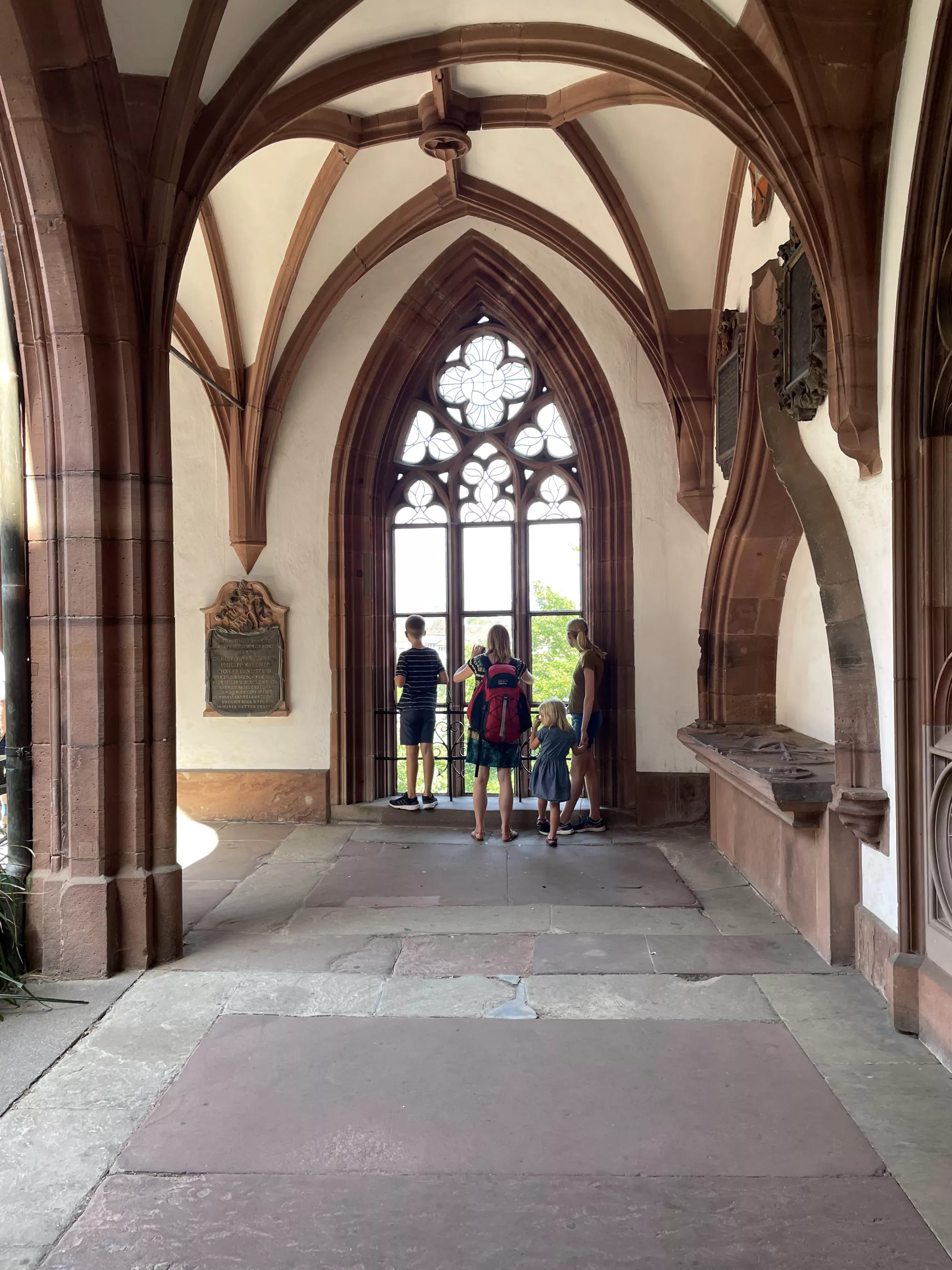 Back in Basel we explored some beautiful brown sandstone cloisters, floated down the Rhine river, and floated across in a boat connected to a cable and pulled across by the current.