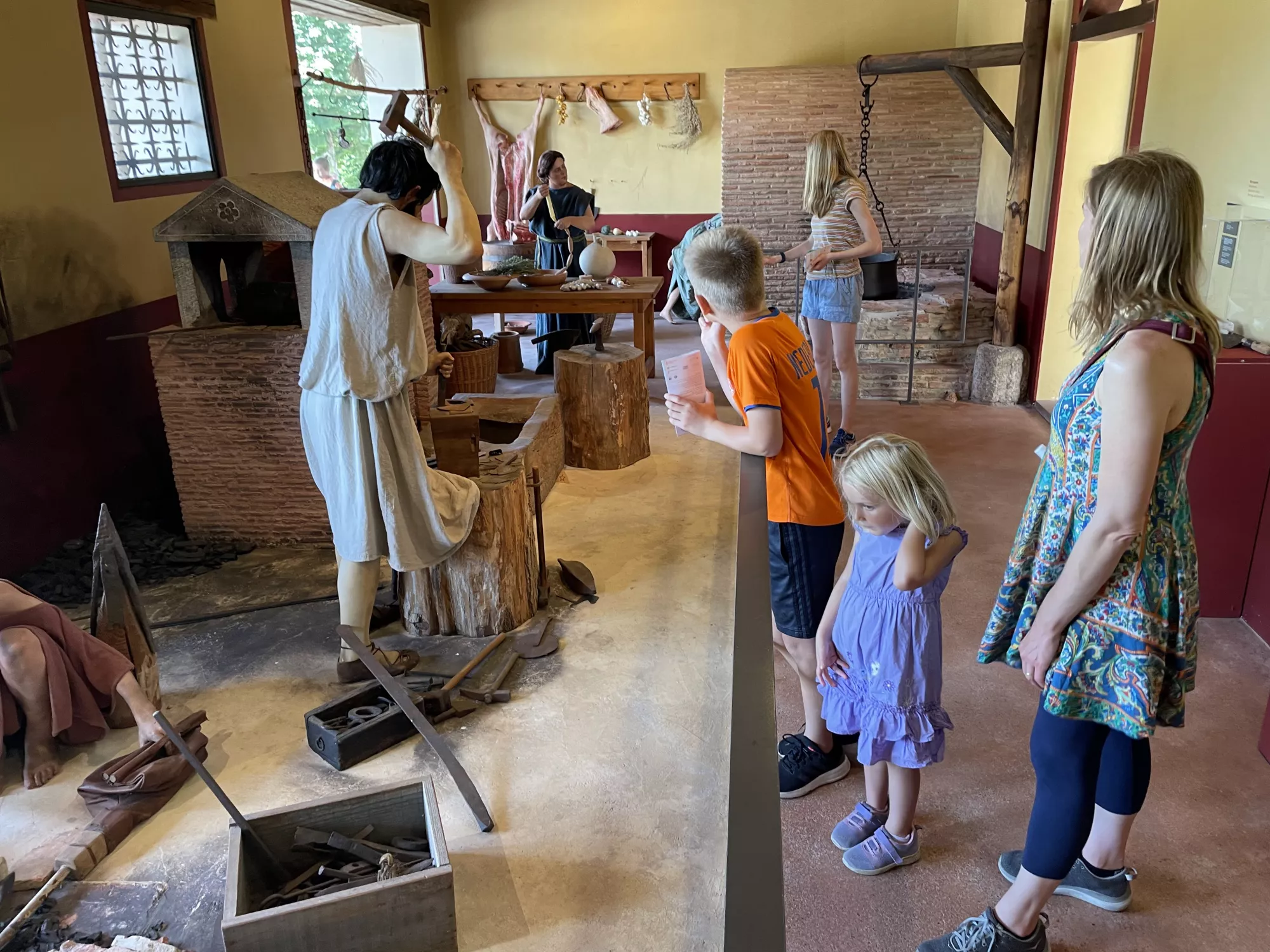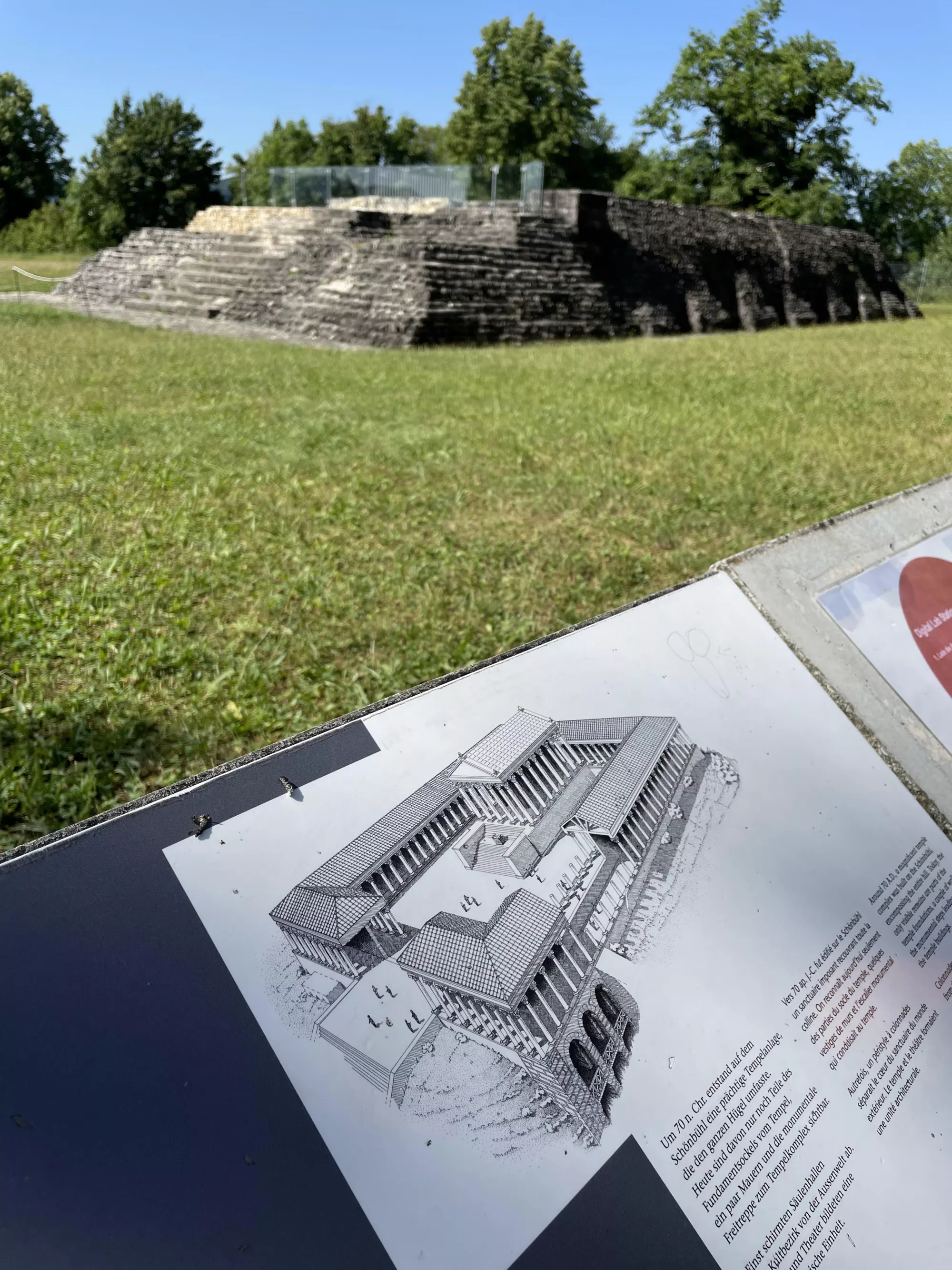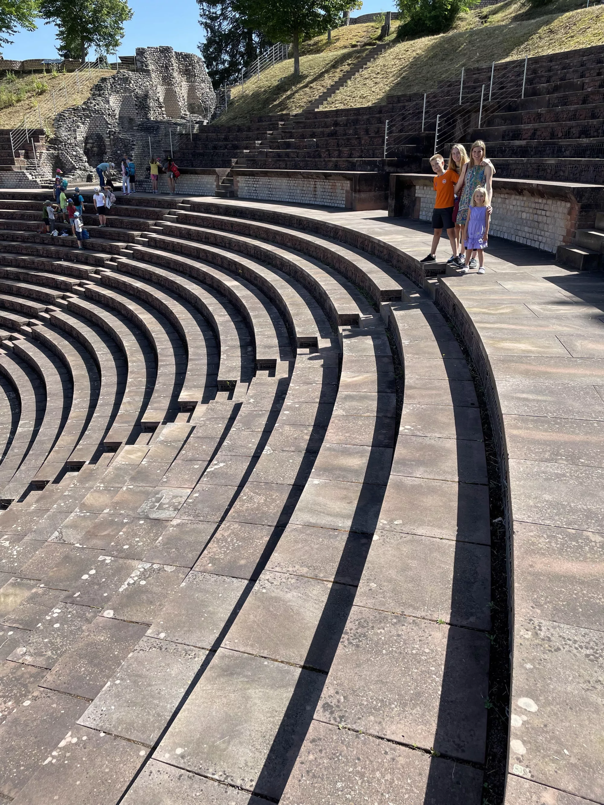 We took a bit of a detour to visit Augusta Raurica, ancient Roman ruins in Switzerland, because we couldn't visit Greece, as an early birthday present to me(Reuben). They had two amphitheaters, ancient sewers, Roman baths, and a temple to the gods and goddesses! In the museum, we learned about an early form of banking: keeping silver silverware hidden and in hard times melting them down into coins.