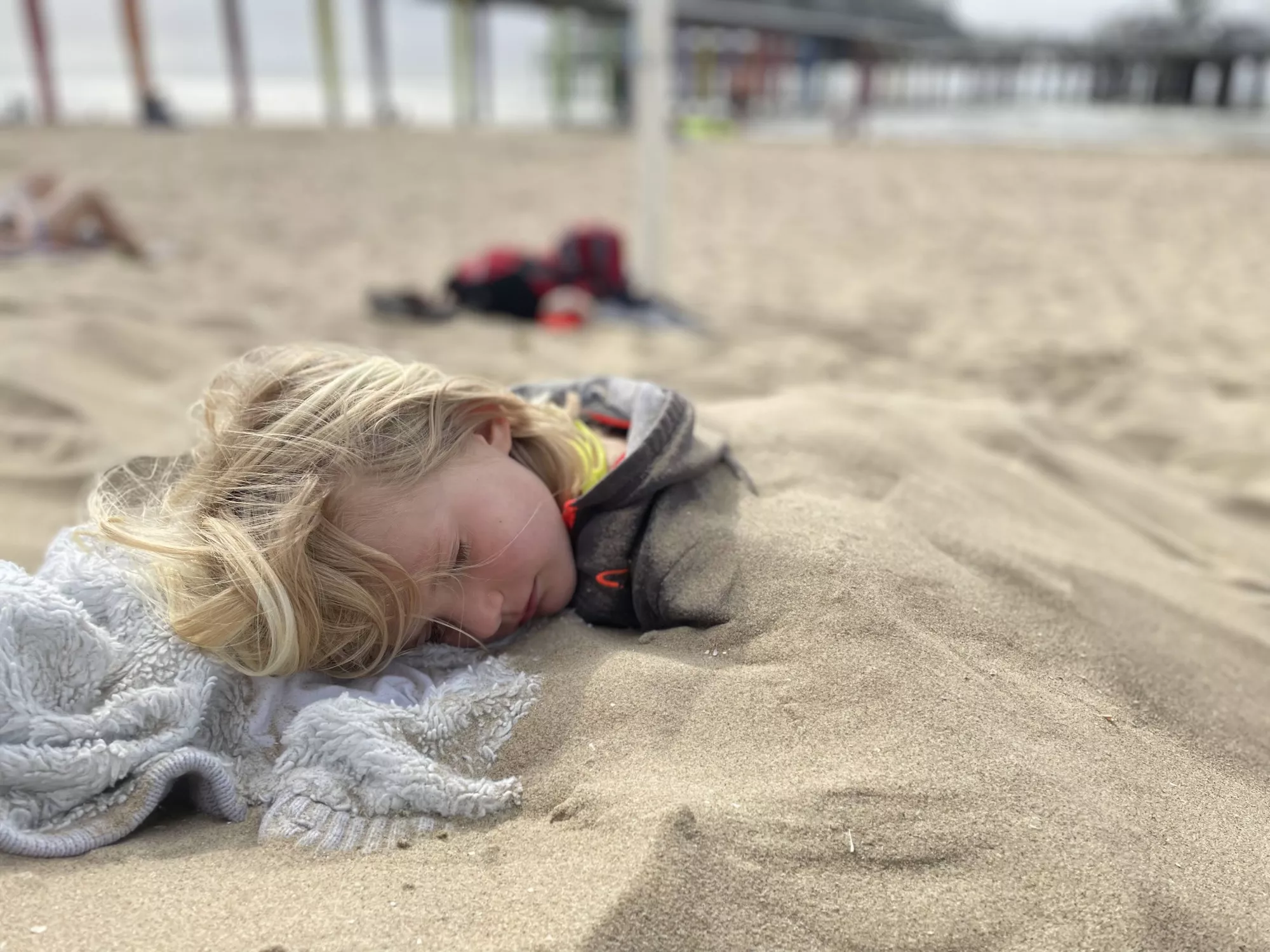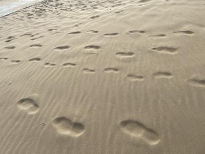 We went to the beach after a burger lunch, and the waves were around 5 feet high! We got so cold that we had to rub ourselves with sand to get warm.