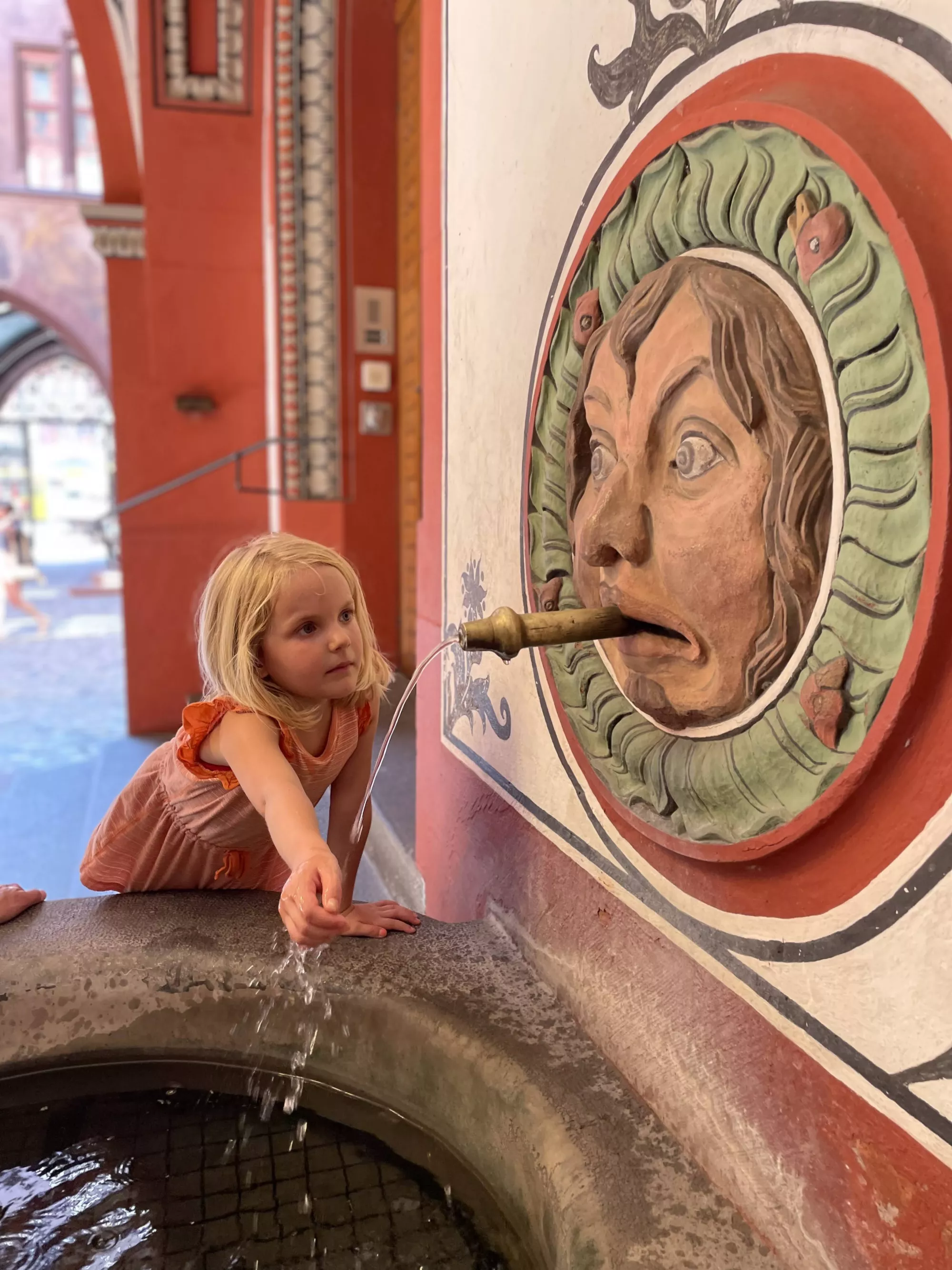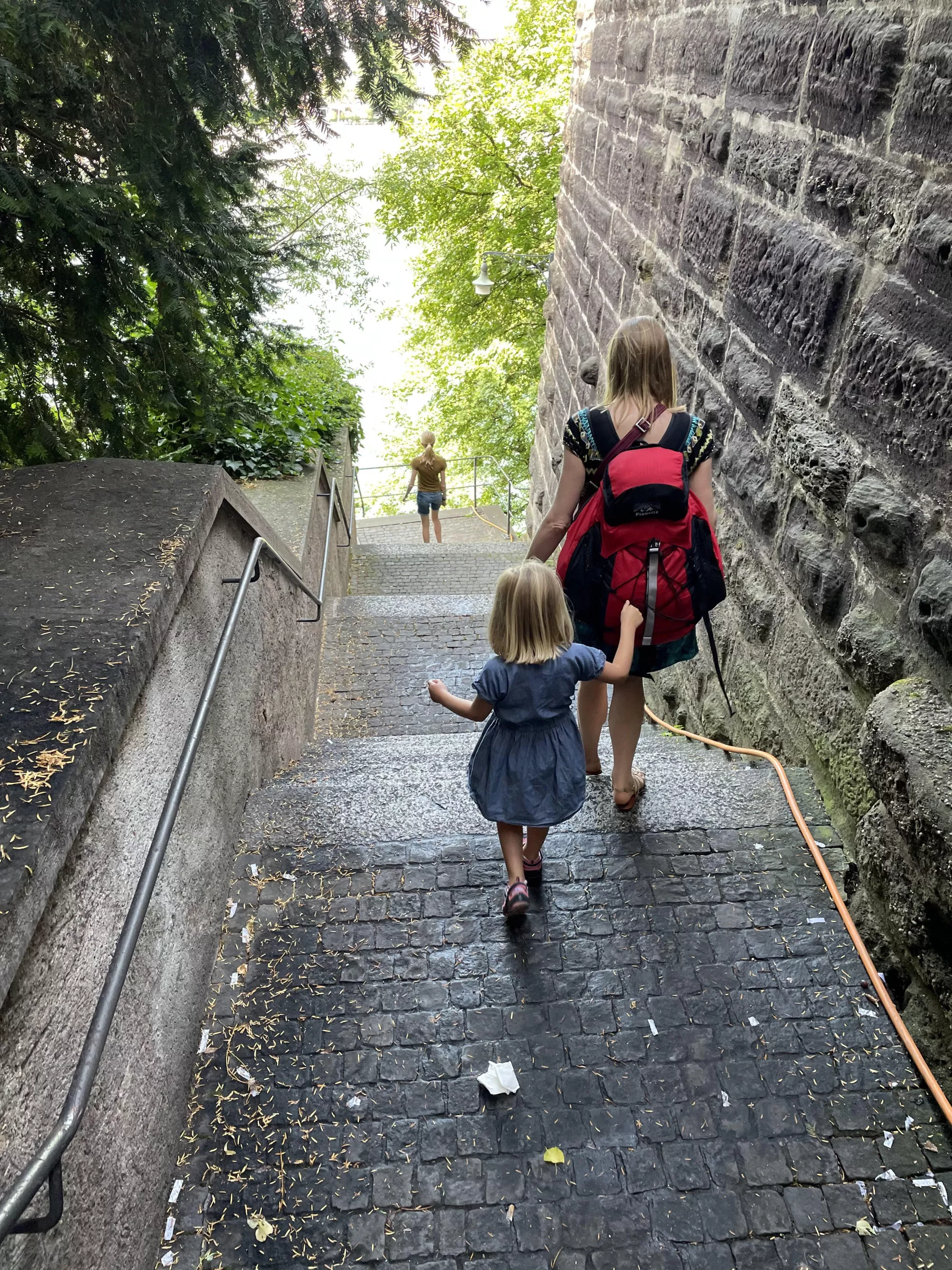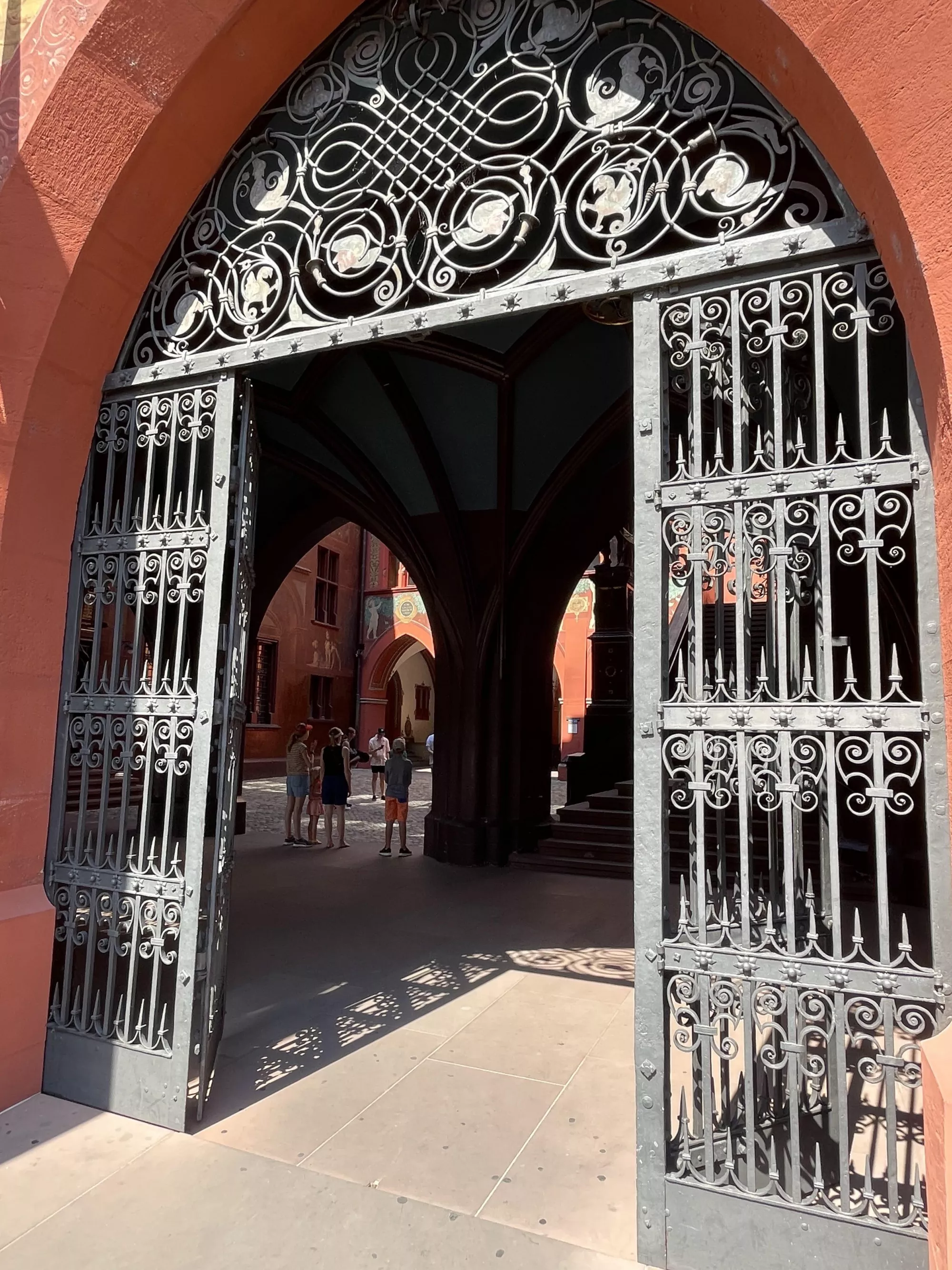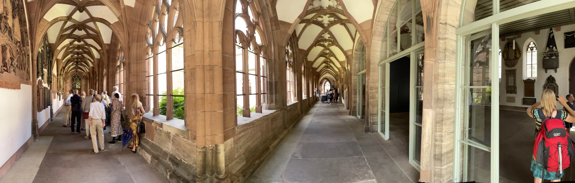 Back in Basel we explored some beautiful brown sandstone cloisters, floated down the Rhine river, and floated across in a boat connected to a cable and pulled across by the current.